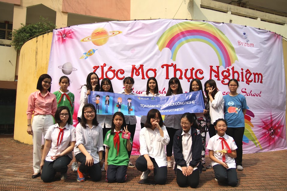 vị về chủ đề "Nữ giới với công nghệ". Các em học sinh đã bày tỏ quan